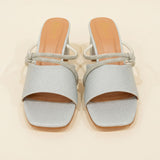 Luxury Glimmer Grace Silver Rhinestone Block Heel Sandals