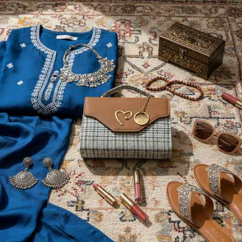 wisaal.co - Premium Checkered Fabric Flap Bag - Evening Essential